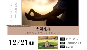 満員御礼【大人向けワークショップ】年末スペシャルクラス 〜太陽礼拝108回を目指して〜YOGA & 25/12/10