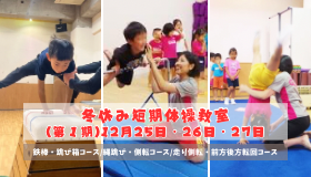 【第1期 12月25日〜27日】 冬休み短期体操教室(鉄棒・跳び箱/縄跳び・側転/走り側転・前方後方転回)JUNIOR 25/12/18