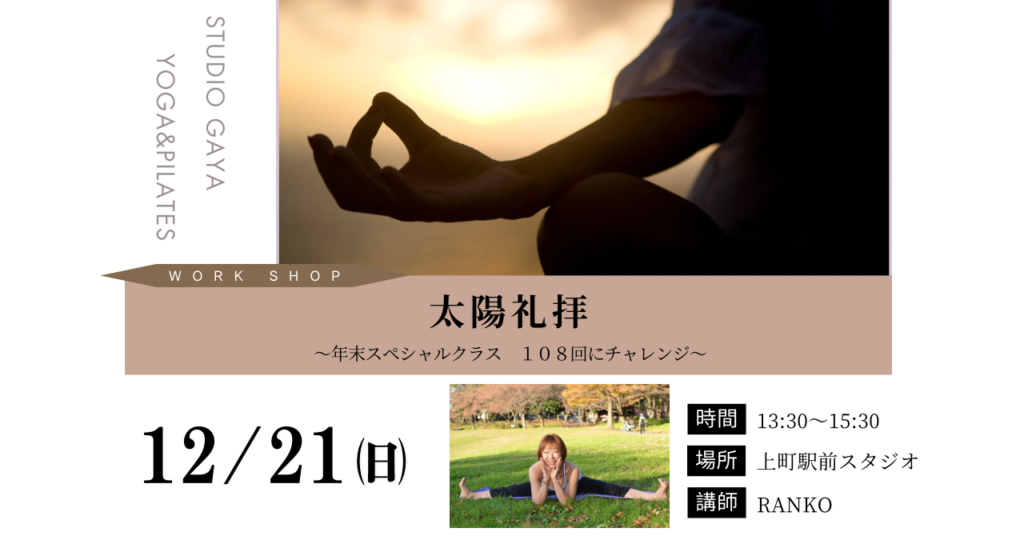 満員御礼【大人向けワークショップ】年末スペシャルクラス 〜太陽礼拝108回を目指して〜